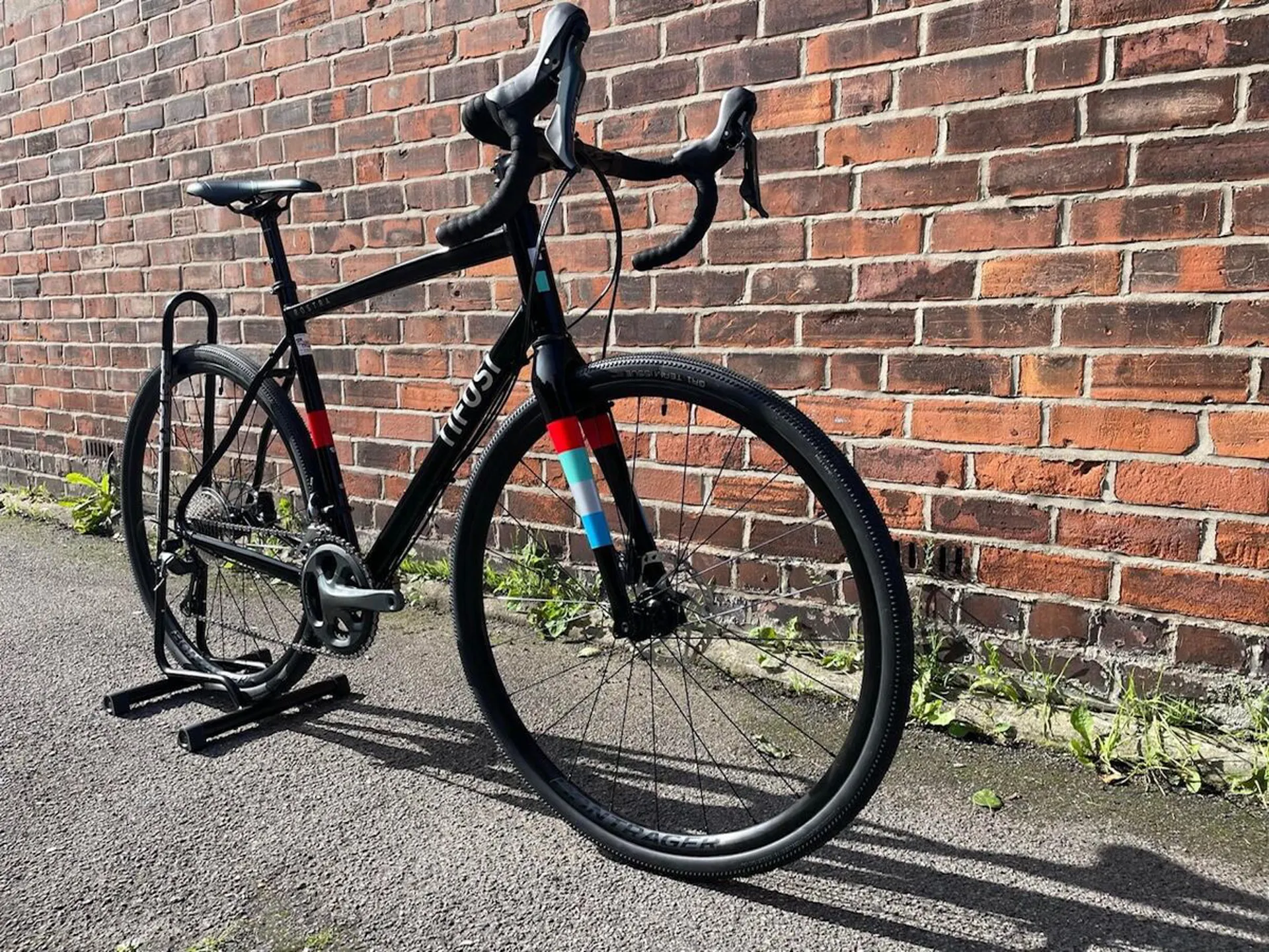 Front Brake: Shimano Tiagra hydraulic disc, flat-mount, Shimano RT66 6-bolt 160mm rotor