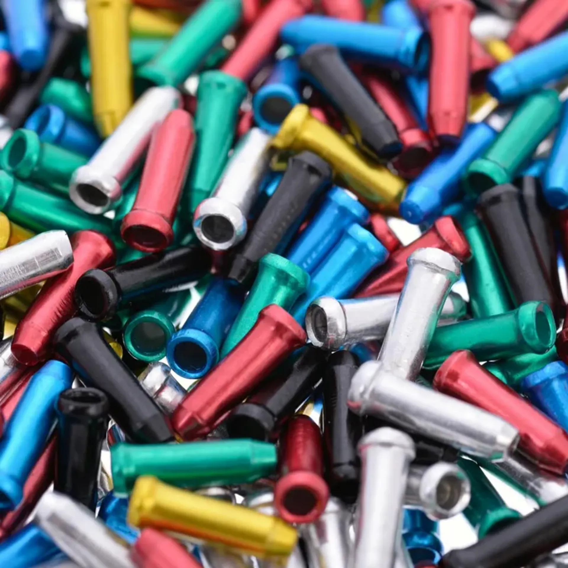 Pot of 500 cable crimps in assorted colours.