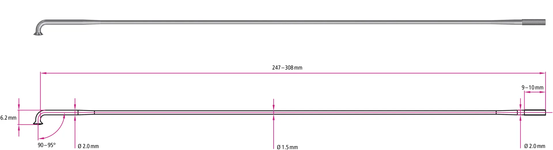 - The 14/17 gauge double butted spoke is just 1.5mm thick in the centre to save the greatest amount of weight, but 2mm thick at the end where strength is needed